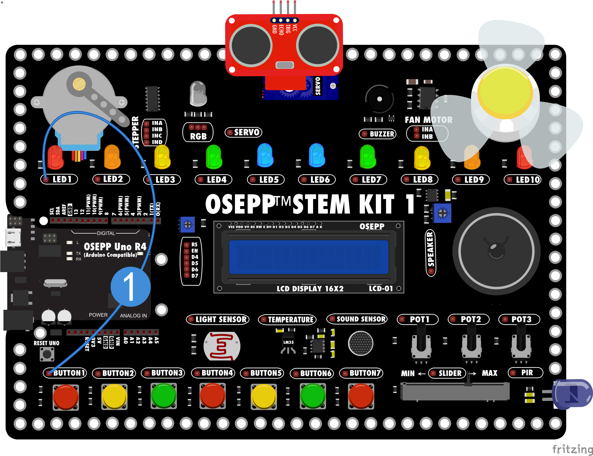 将按钮Button1的端子接到LED1的端子上。