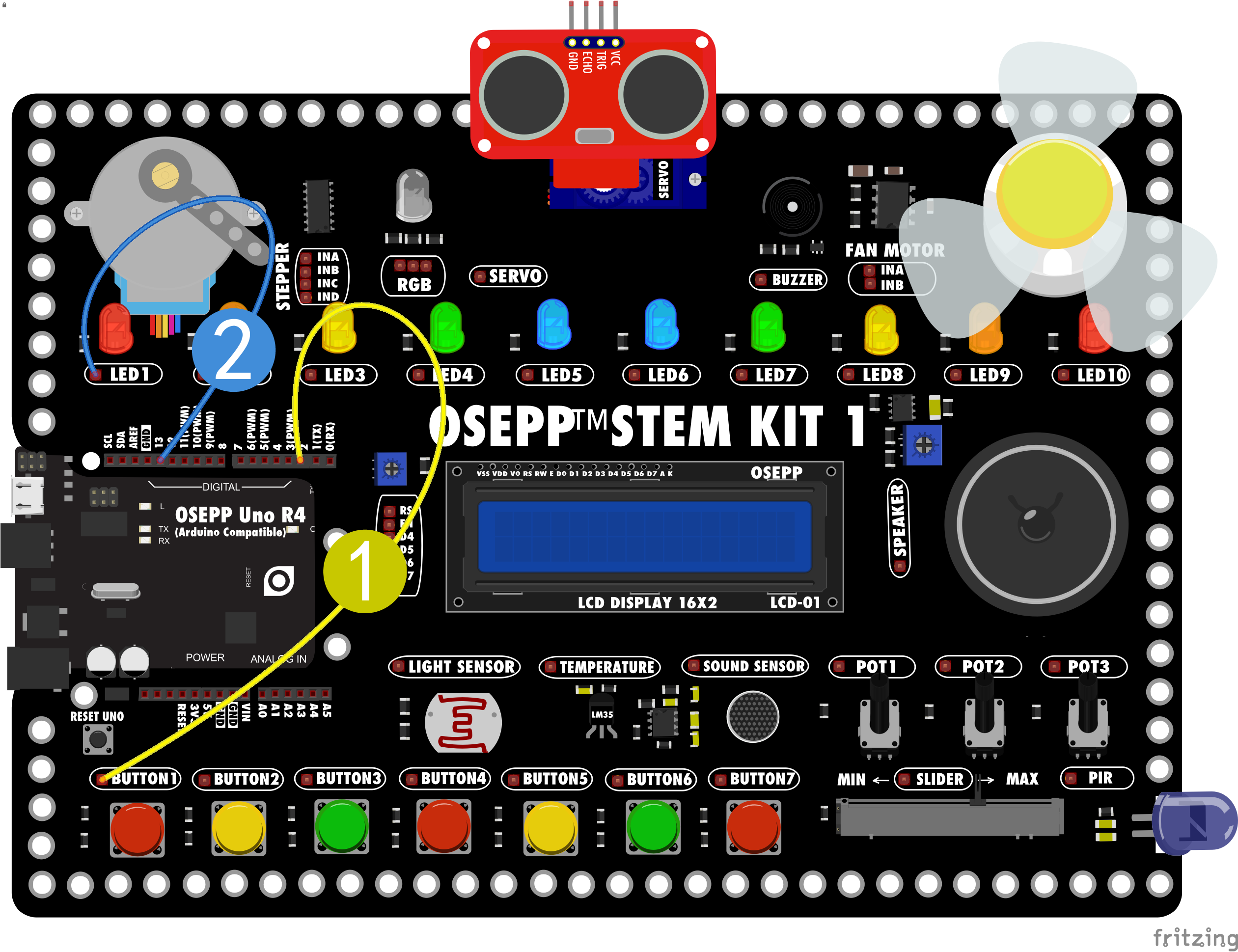 2. LED1连接在OSEPP UNO的13号引脚。