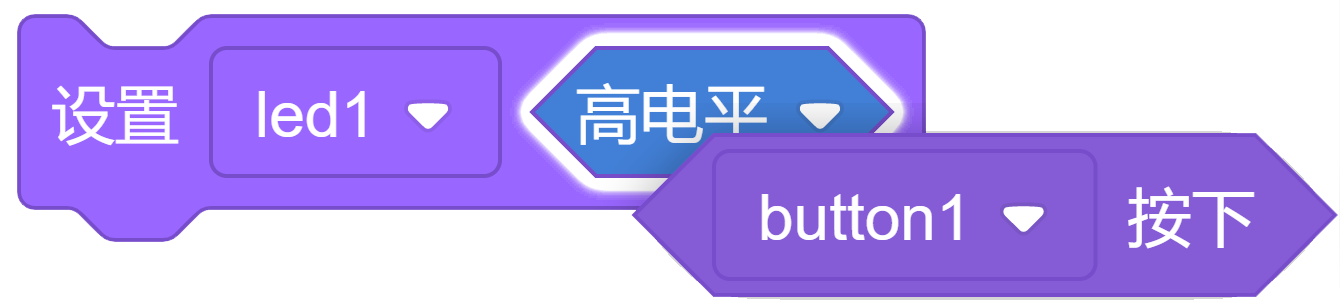 按钮开关状态积木,左图表示Button1开关按下时状态。工作区中需要有按钮积木模块,此积木才会出现。