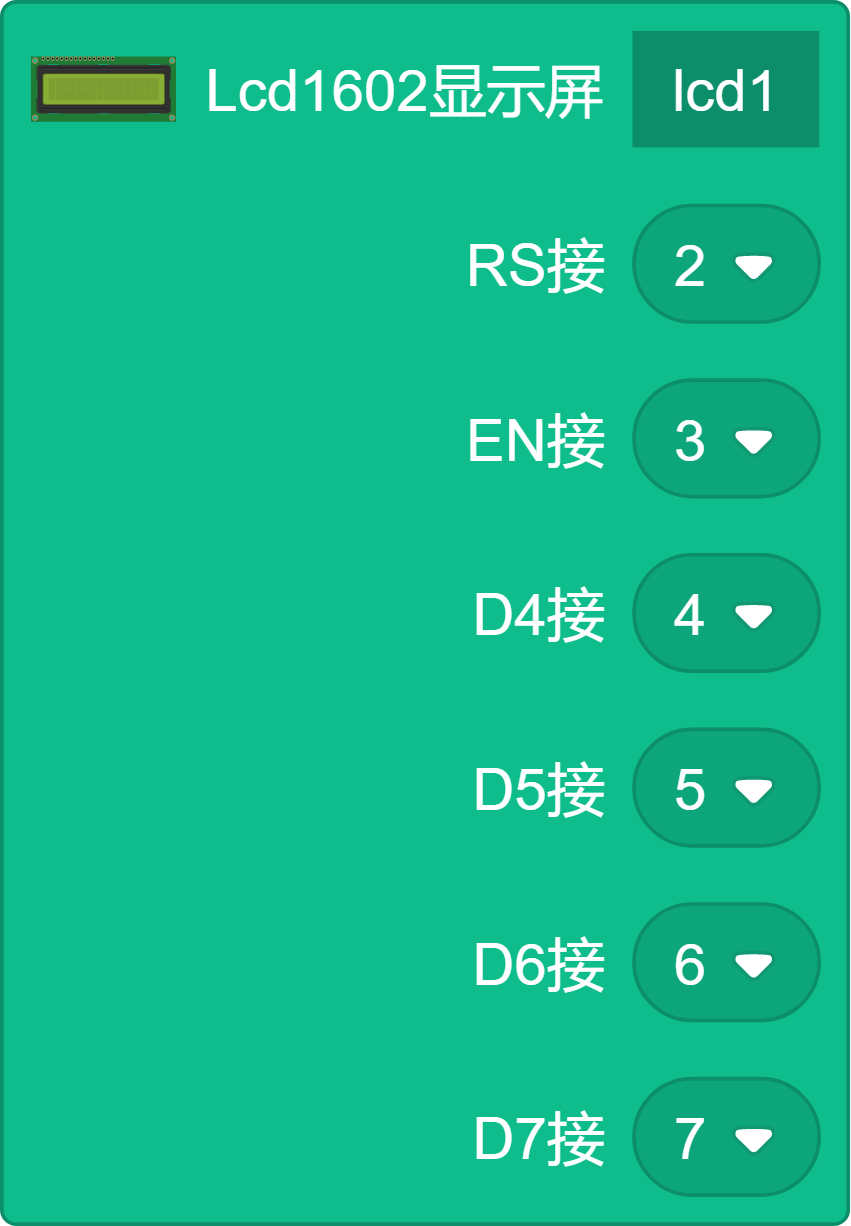 LCD积木,定义显示屏的名称引脚号。