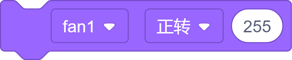 电动马达驱动积木。可以选择正转和反转,正转是顺时针,反转是逆时针。设定值的范围是0-255。