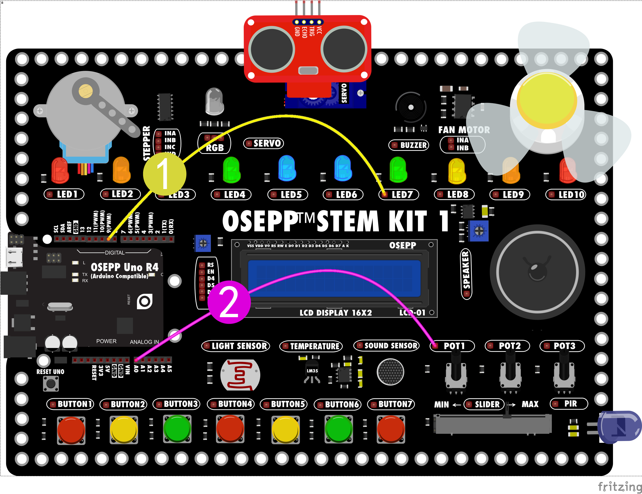 LED7接到OSEPP UNO的9号引脚。 - 电位器