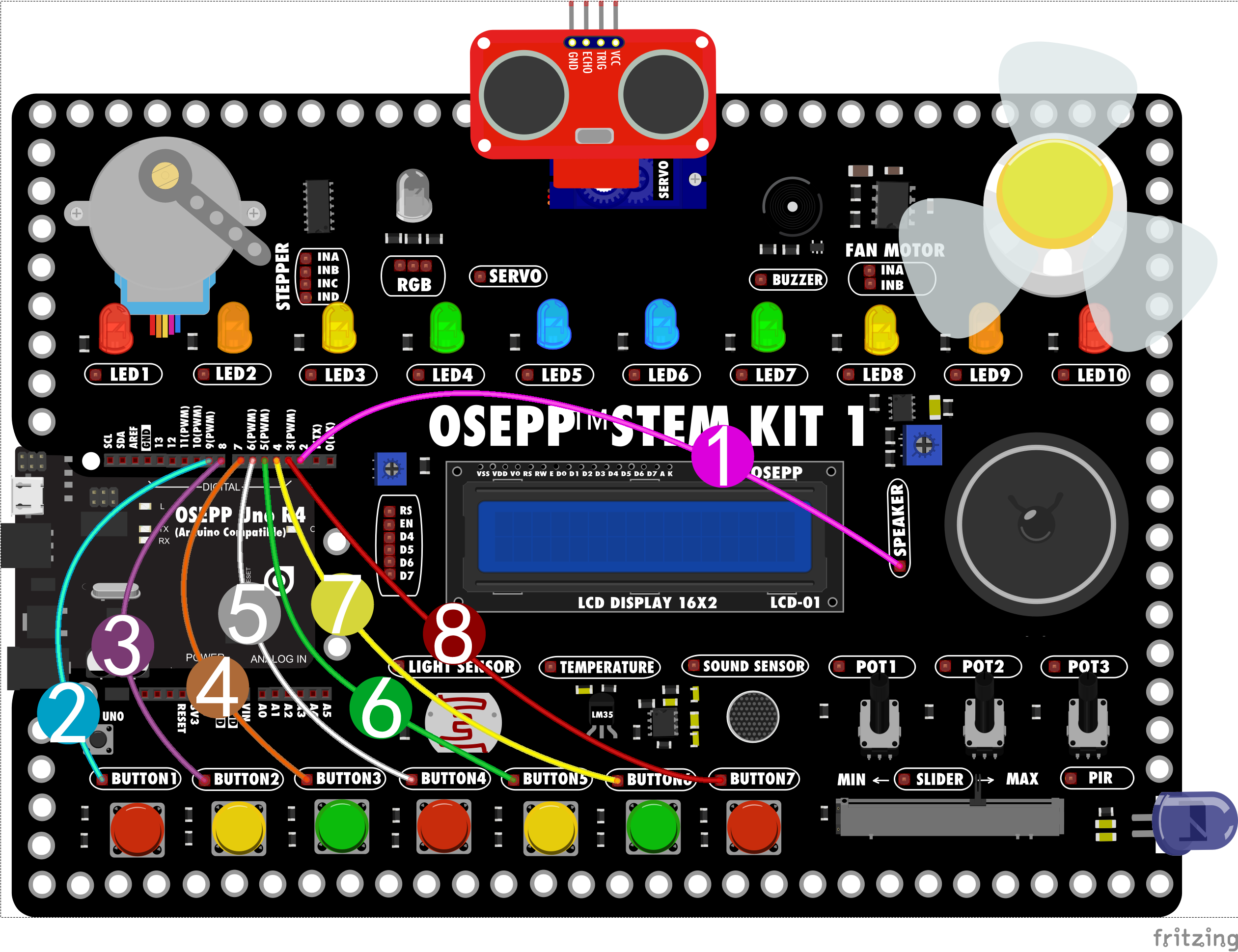 | 序号 | 元件端子 | osepp UNO引脚号 |