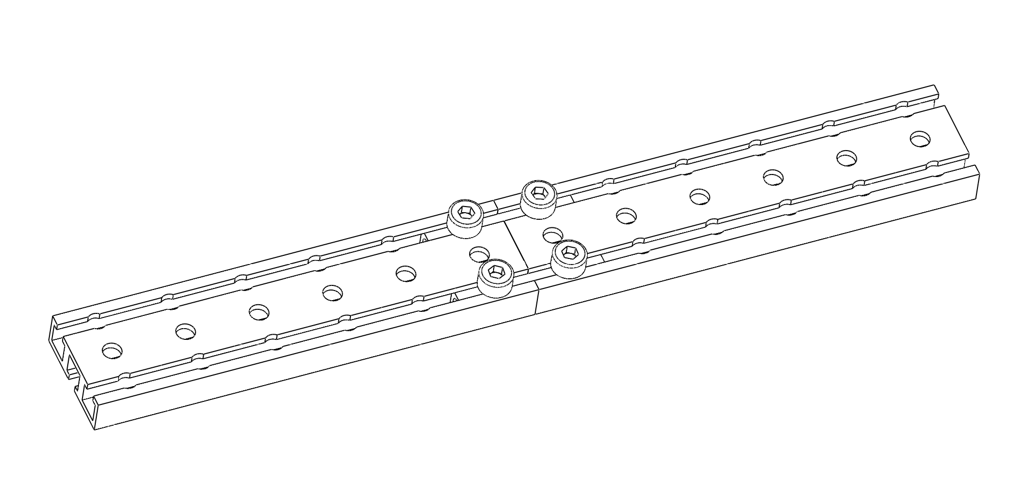 型材拉伸面尺寸为24x8mm,设计有3条5.6x5槽,型材拉伸出来的槽贯穿整个梁,可以放入梁连接器(一个用于梁连接的配件)或者M3六角螺母或者M4方形螺母,槽上任意位置都可以作为固定点。
