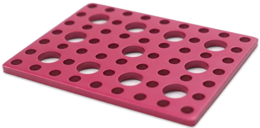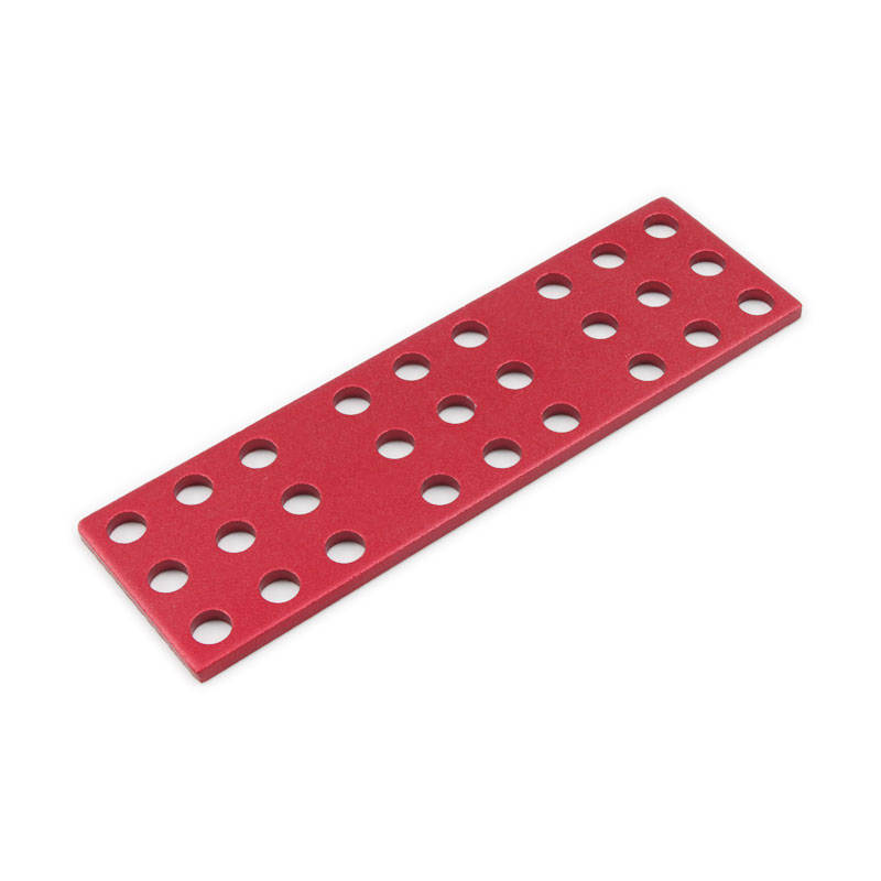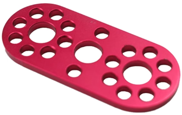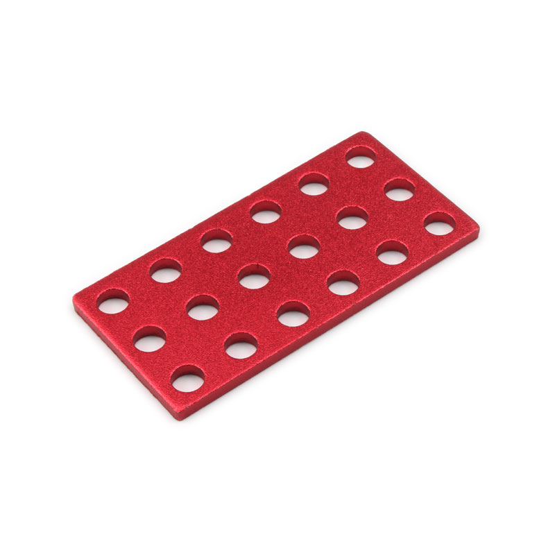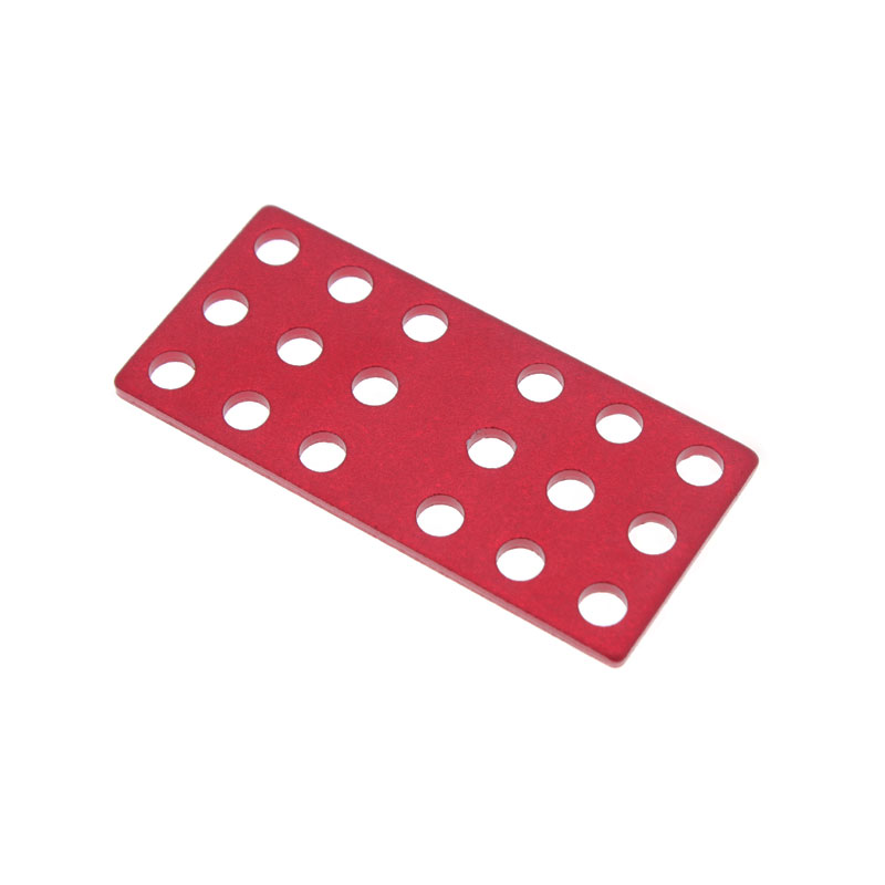 金属构建模块系列之连接片,是专为STEM教育和DIY爱好者设计的结构连接组件。采用铝合金5052板材制作,冲压落料,喷砂,表面进行阳极氧化处理,颜色为红色或者蓝色,,兼具轻量化与高强度特性。可作为辅助件配合各种梁搭建更稳固的结构框架。