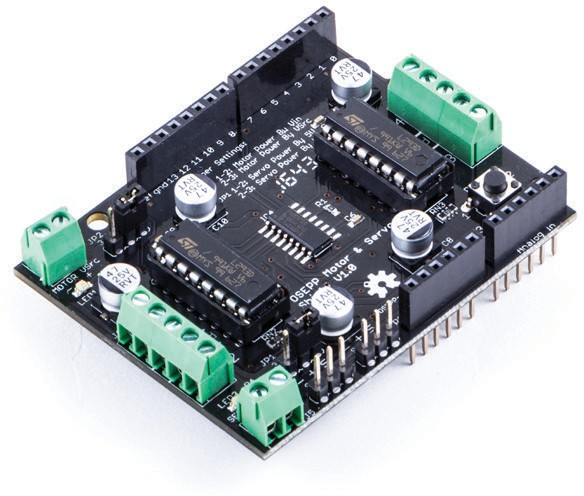 - 支持多达4个具有单独的8位速度选择的双向直流马达,以及多达2个具有单线圈,双线圈或交错式步进的步进马达(单极或双极)。