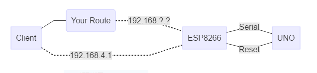该项目运行在esp8266上,并为uno提供串行桥接服务,第一次需要使用串口将草图上传到esp8266,然后可以像使用USB一样使用WIFI串口。