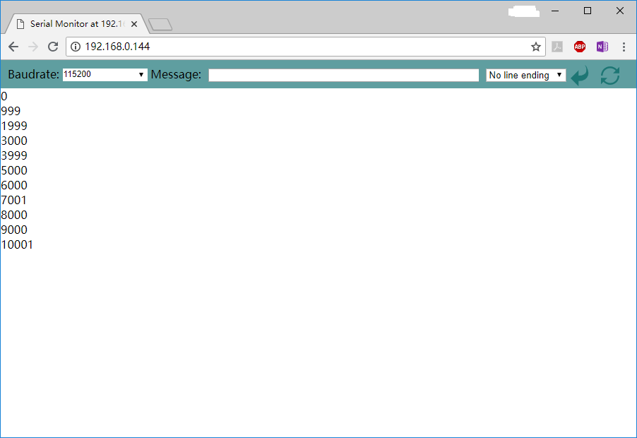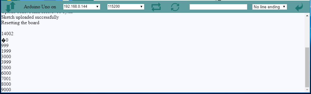 note:您可以通过URL参数*?baudrate=nnnnn**指定串口波特率,ESP8266会记住它* - 上传一个具有串口打印功能的程序到Uno,参考步骤4