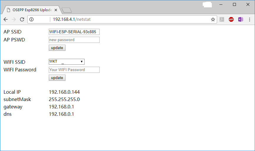 - 使用浏览器打开URL: http://192.168.4.1/netstat