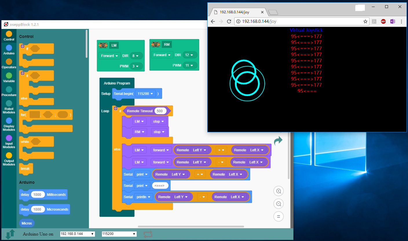 - TCP通道(oseppBlock)和最多五个WebSocket连接(浏览器)从Uno串行端口同时接收数据
